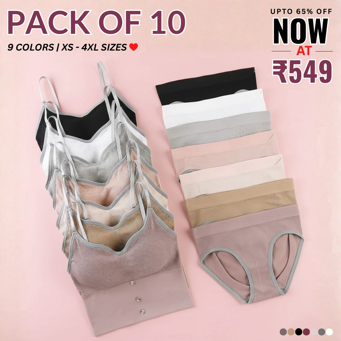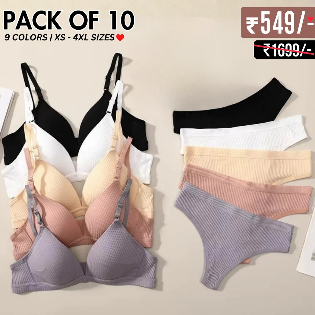 (Pack of 10) Women's Bra Panty Lingerie Set for Girl's Combo | L-60