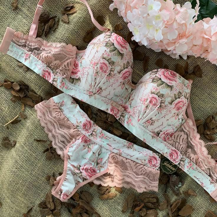 Lingerie Underwire Push-Up Thin Padded Bra Set Brassiere + Panty Floral Bras Bra Set