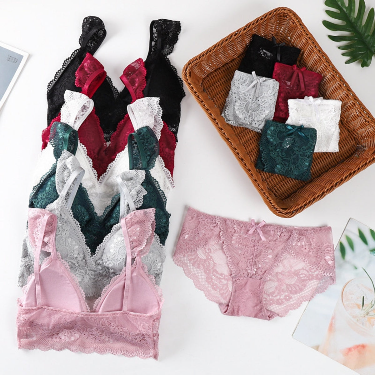 The packs contain matching lingerie sets, each set including a bra and panties designed with the same fabric and style.